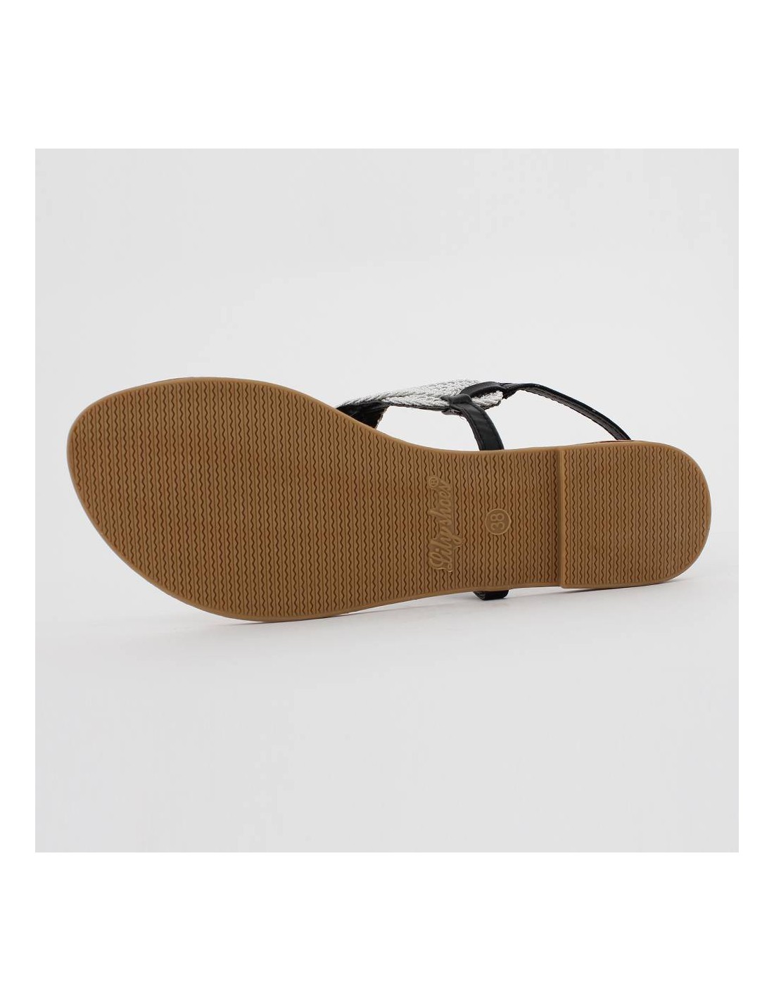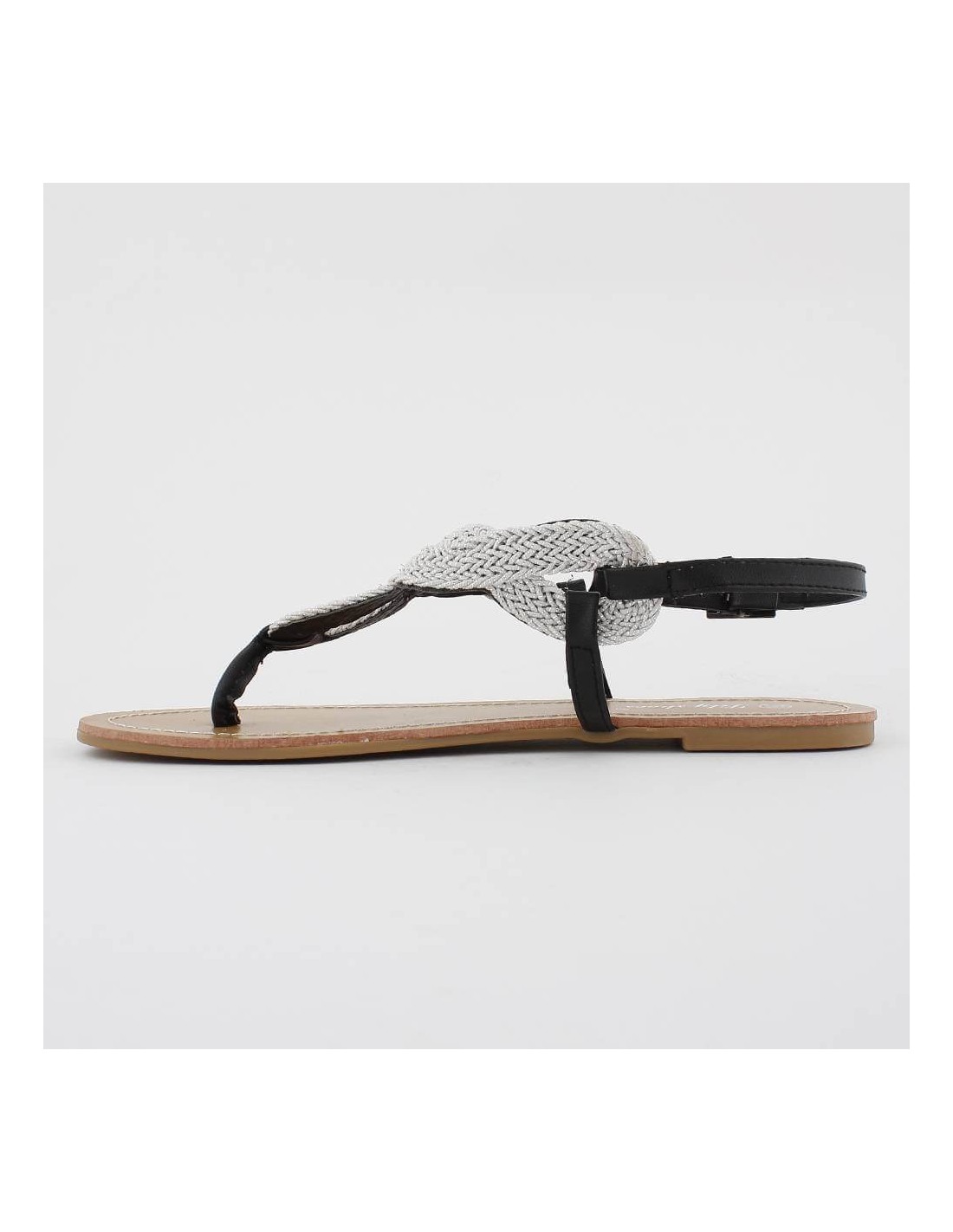 Ravissantes sandales plates femme noire et argenté SABRINA