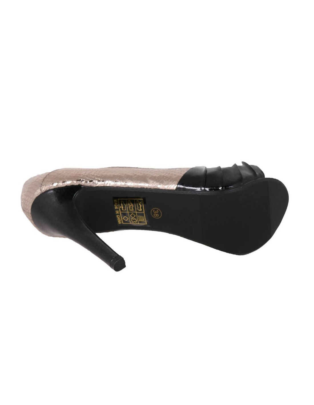 Escarpin femme simili cuir de soirée à talon noir et étan NERINA