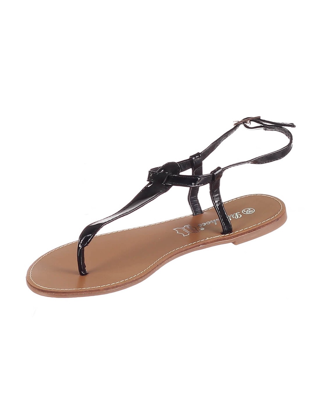 La sandale plate pour femmes coloris noir verni, modèle Ibiza