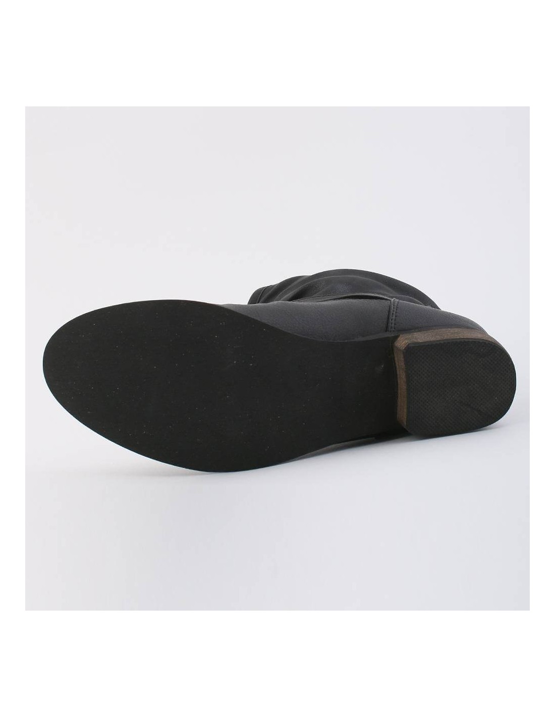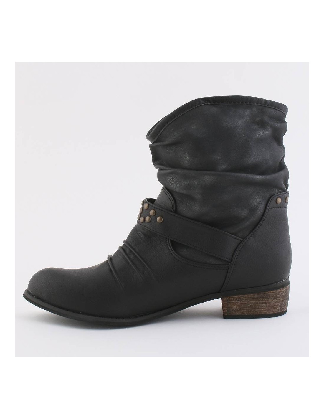 BOTTINE FEMME SIMILI CUIR NOIR PLISSÉE A BRIDES ET CLOUS ANGELA