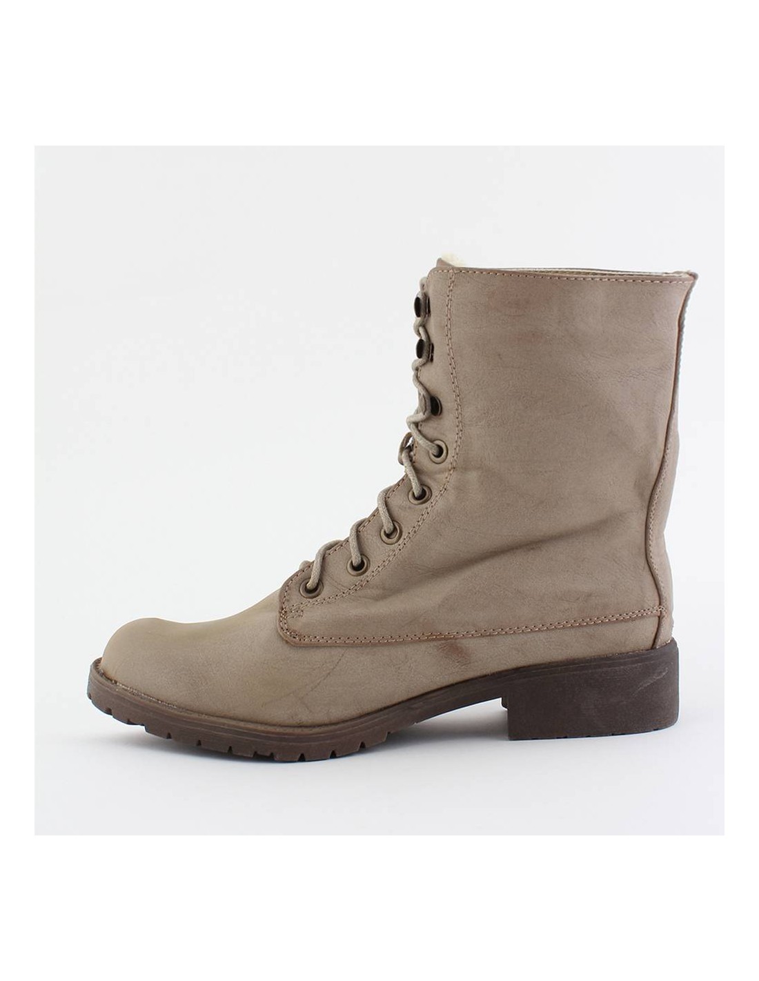 Bottines femme fourrée cloutée kaki Elma