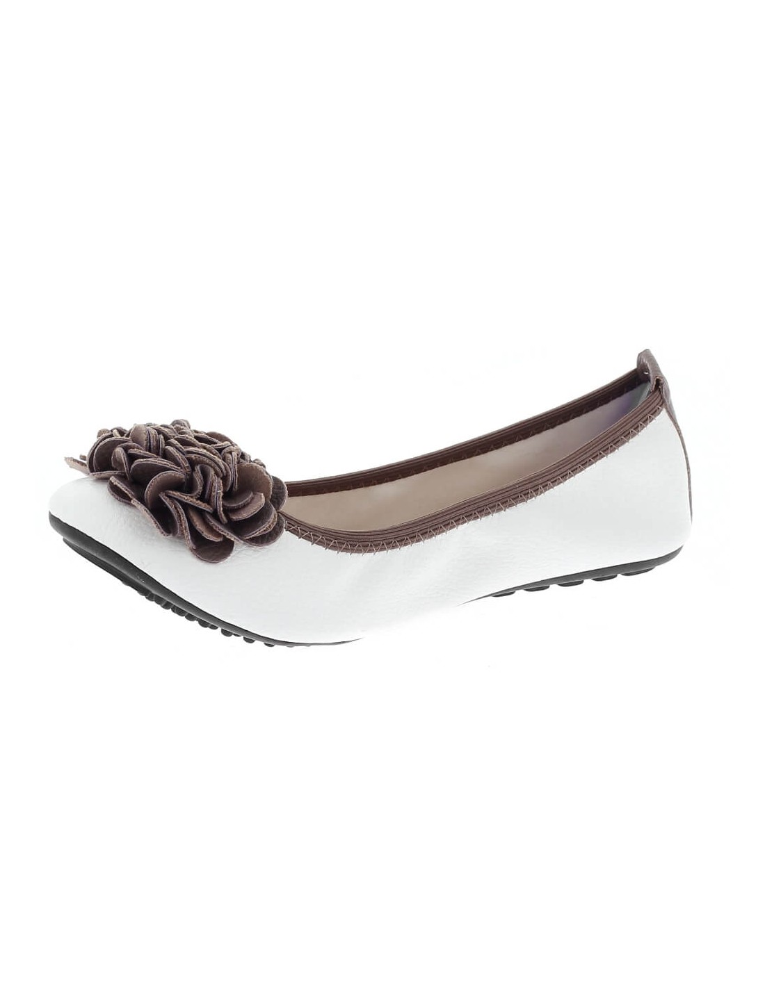 Ballerine femme souple  cuir couleur blanc et taupe à fleur MONCEAU