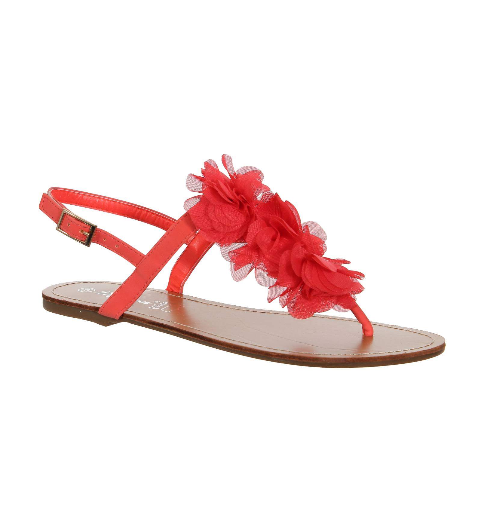 Magnifique sandale plate à fleur corail Malaga en simili cuir